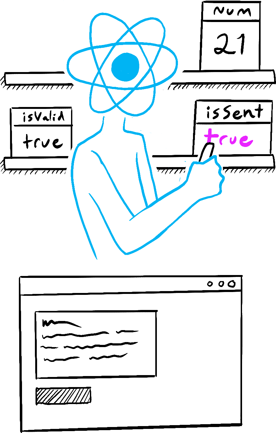 In this example, when you press “send”, setIsSent(true) tells React to re-render the UI: